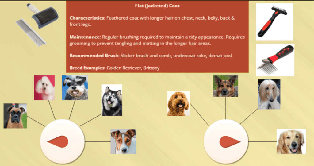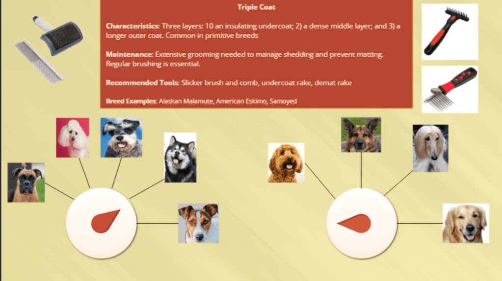 This structure allows learners to immediately see how coat type influences grooming decisions, supporting both recognition and real-world application.